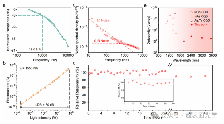 经HCl处理的InSb量子点光电探测器的器件性能表现。